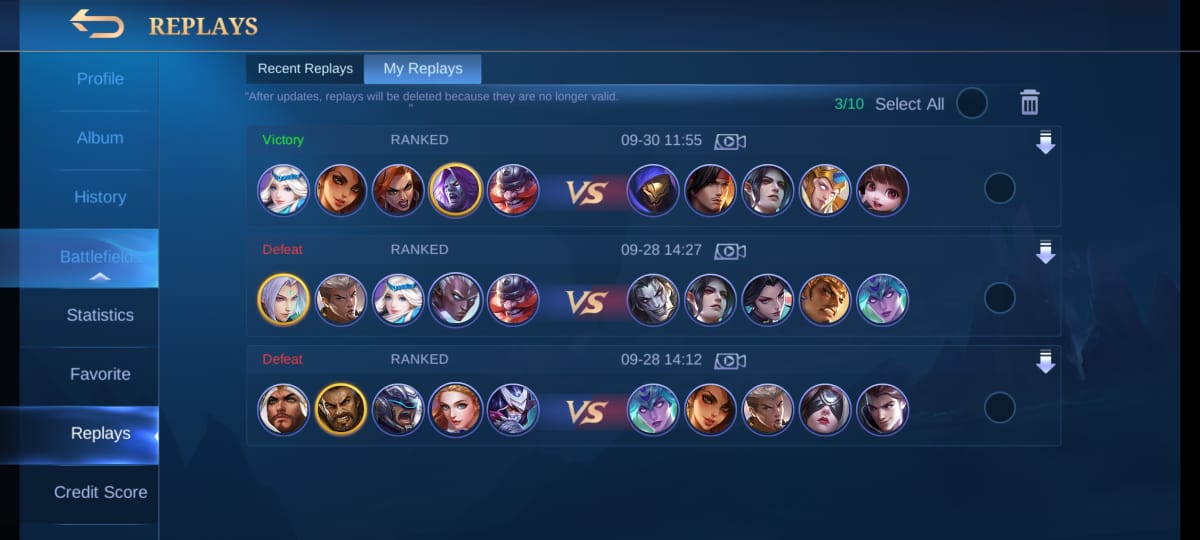 Di Mobile Legends, alat yang disebut replay memungkinkan Anda meninjau game sebelumnya.